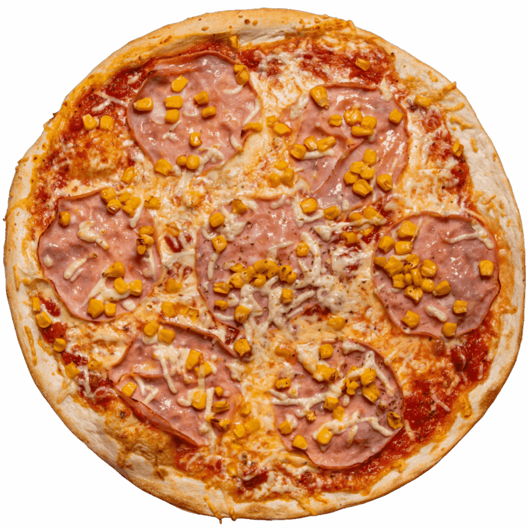 Výborná a bohatě zdobená pizza s lahodnou kombinací chutí šunky a kukuřice. Tenké těsto bohatě zdobené čerstvými surovinami od prověřených dodavatelů. Naše mražená pizza k rozpékání má bohatou oblohu a vyrábíme ji klasickým způsobem.